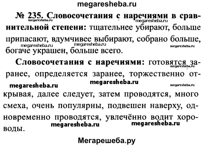 Подробный решебник (ГДЗ) по Русскому языку за 7 (седьмой) класс - готовый ответ упражнение - 235. Авторы учебника: Баранов, Ладыженская, Тростенцова. Издательство: Просвещение 2015-2024.