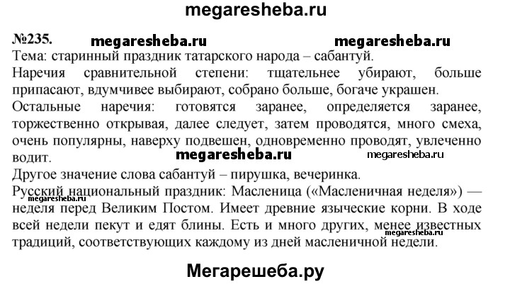 Гдз по русскому языку за 7 класс Ладыженская, Баранов, Тростенцова ответ на упражнение 235