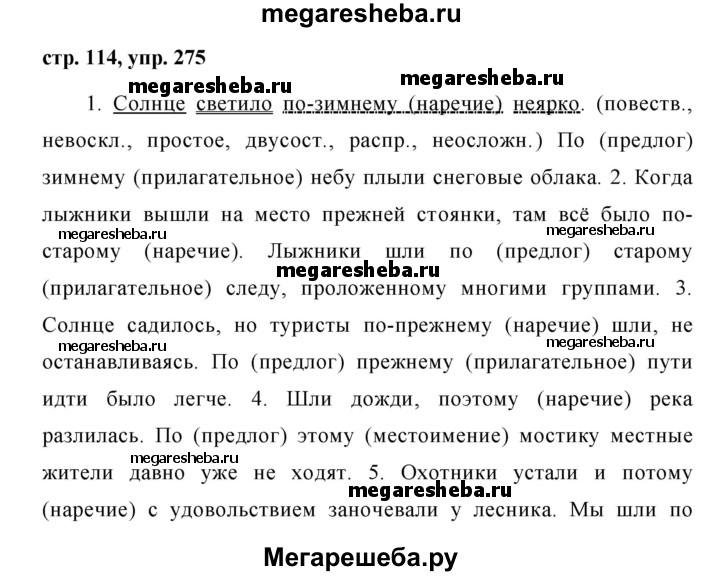 Подробный решебник (ГДЗ) по Русскому языку за 7 (седьмой) класс - готовый ответ упражнение - 275. Авторы учебника: Баранов, Ладыженская, Тростенцова. Издательство: Просвещение 2015-2024.