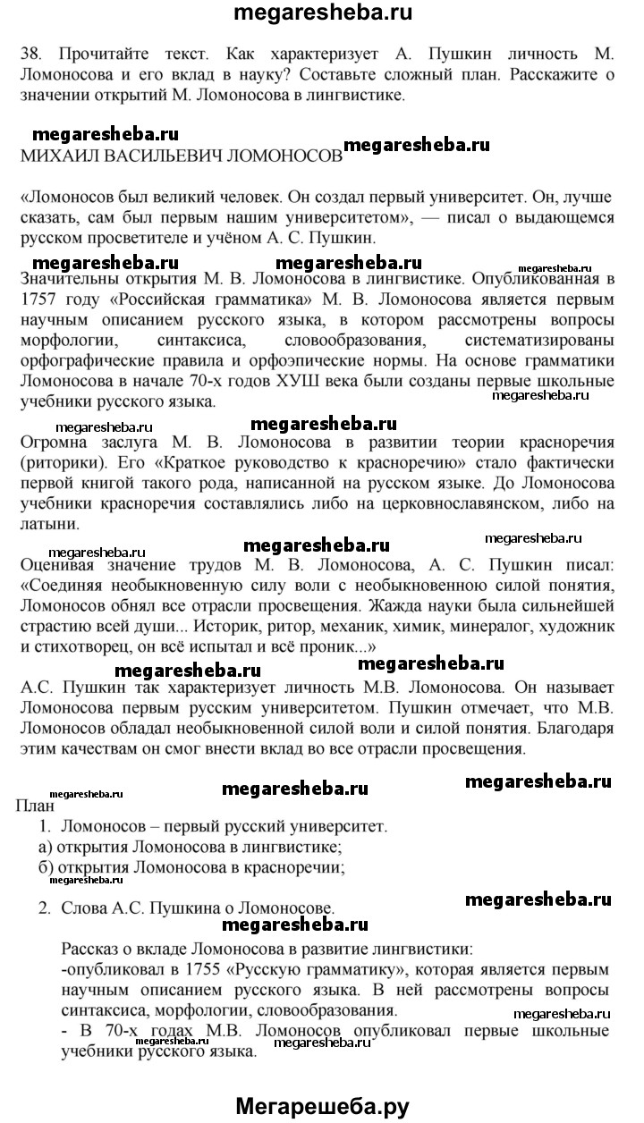 Гдз по русскому языку за 7 класс Ладыженская, Баранов, Тростенцова ответ на упражнение 38