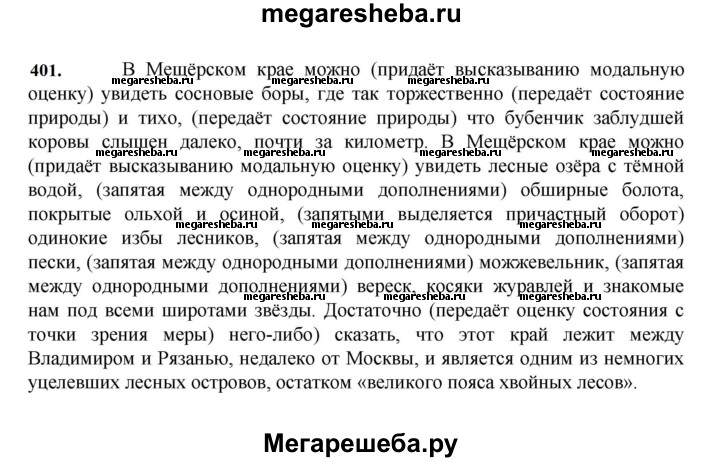 Подробный решебник (ГДЗ) по Русскому языку за 7 (седьмой) класс - готовый ответ упражнение - 401. Авторы учебника: Баранов, Ладыженская, Тростенцова. Издательство: Просвещение 2015-2024.