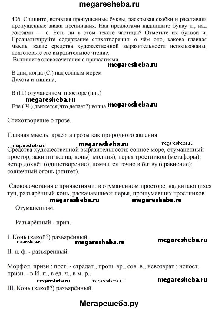 Подробный решебник (ГДЗ) по Русскому языку за 7 (седьмой) класс - готовый ответ упражнение - 406. Авторы учебника: Баранов, Ладыженская, Тростенцова. Издательство: Просвещение 2015-2024.