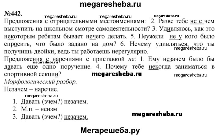 Подробный решебник (ГДЗ) по Русскому языку за 7 (седьмой) класс - готовый ответ упражнение - 442. Авторы учебника: Баранов, Ладыженская, Тростенцова. Издательство: Просвещение 2015-2024.