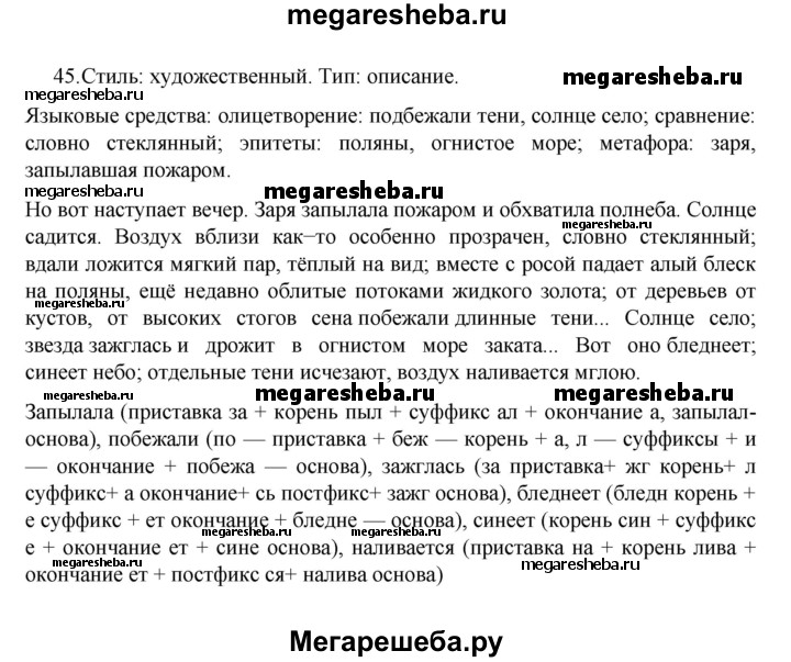 Подробный решебник (ГДЗ) по Русскому языку за 7 (седьмой) класс - готовый ответ упражнение - 45. Авторы учебника: Баранов, Ладыженская, Тростенцова. Издательство: Просвещение 2015-2024.