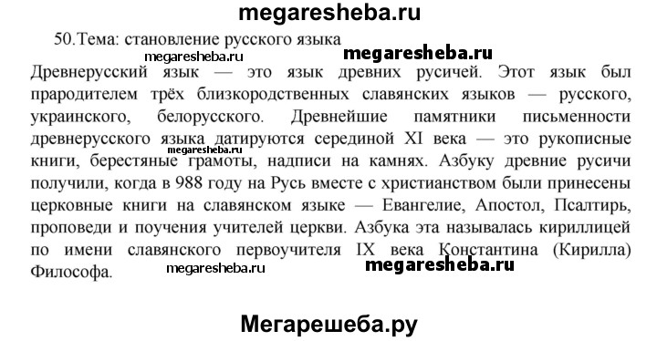 Подробный решебник (ГДЗ) по Русскому языку за 7 (седьмой) класс - готовый ответ упражнение - 50. Авторы учебника: Баранов, Ладыженская, Тростенцова. Издательство: Просвещение 2015-2024.
