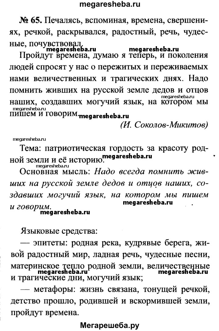 Подробный решебник (ГДЗ) по Русскому языку за 7 (седьмой) класс - готовый ответ упражнение - 65. Авторы учебника: Баранов, Ладыженская, Тростенцова. Издательство: Просвещение 2015-2024.