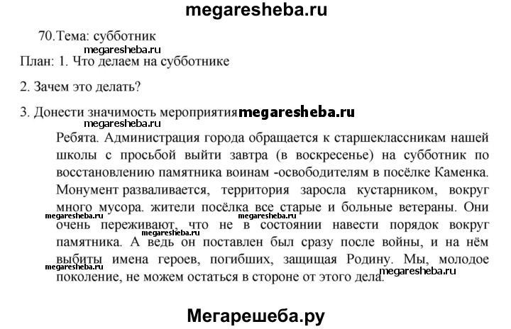Гдз по русскому языку за 7 класс Ладыженская, Баранов, Тростенцова ответ на упражнение 70