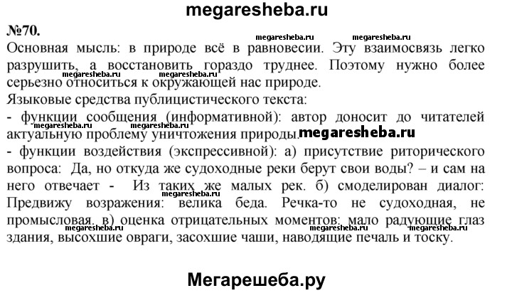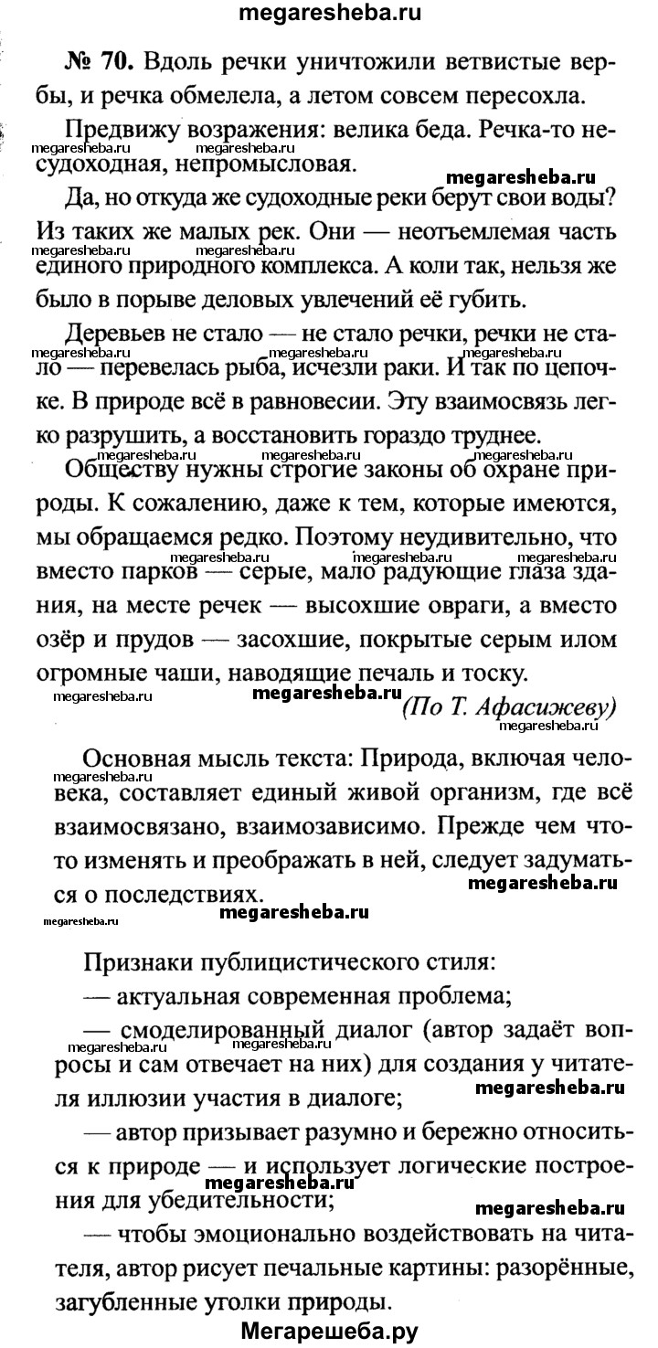 Подробный решебник (ГДЗ) по Русскому языку за 7 (седьмой) класс - готовый ответ упражнение - 70. Авторы учебника: Баранов, Ладыженская, Тростенцова. Издательство: Просвещение 2015-2024.
