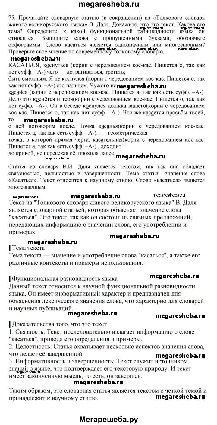 Гдз по русскому языку за 7 класс Ладыженская, Баранов, Тростенцова ответ на упражнение 75