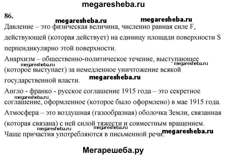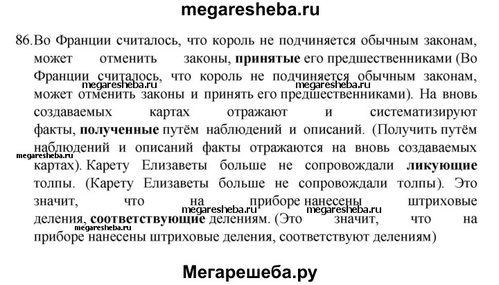 Подробный решебник (ГДЗ) по Русскому языку за 7 (седьмой) класс - готовый ответ упражнение - 86. Авторы учебника: Баранов, Ладыженская, Тростенцова. Издательство: Просвещение 2015-2024.