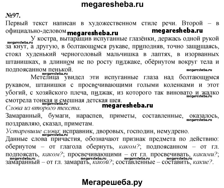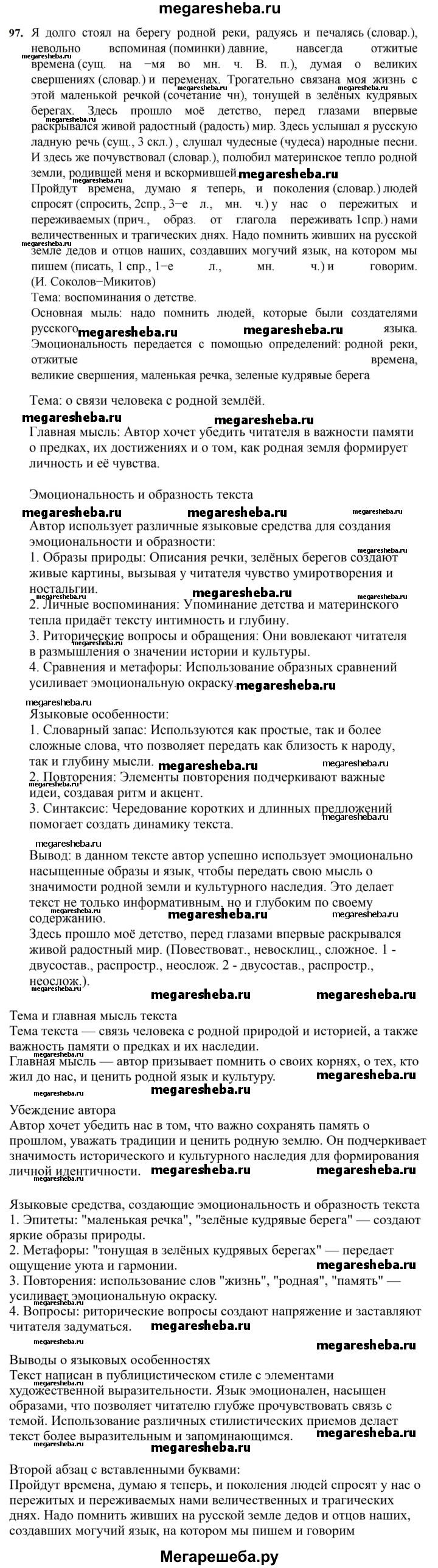 Подробный решебник (ГДЗ) по Русскому языку за 7 (седьмой) класс - готовый ответ упражнение - 97. Авторы учебника: Баранов, Ладыженская, Тростенцова. Издательство: Просвещение 2015-2024.