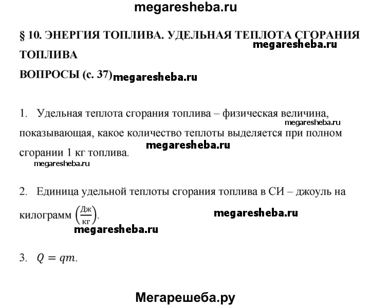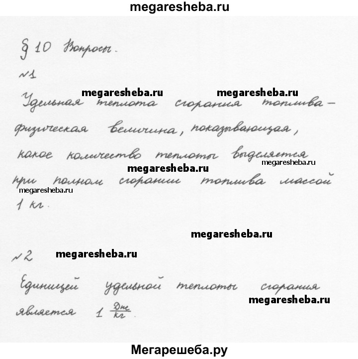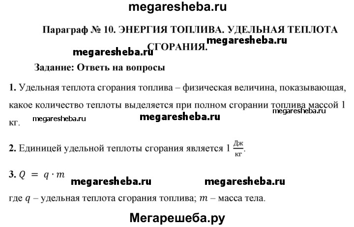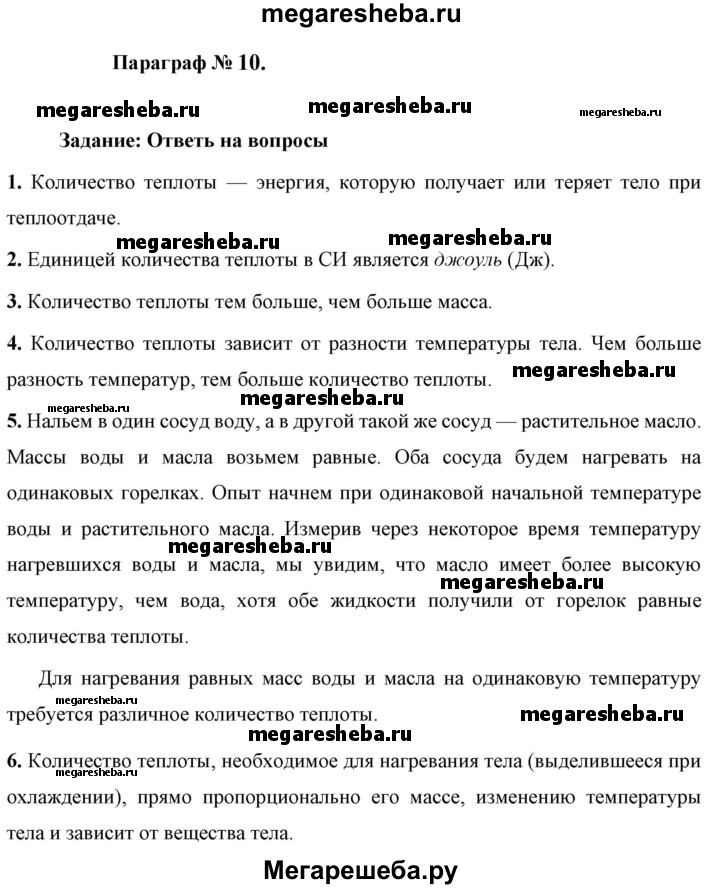 ГДЗ по физике 8 класс Перышкин Базовый уровень вопросы - §10
