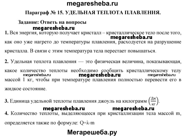 ГДЗ по физике 8 класс Перышкин Базовый уровень вопросы - §15