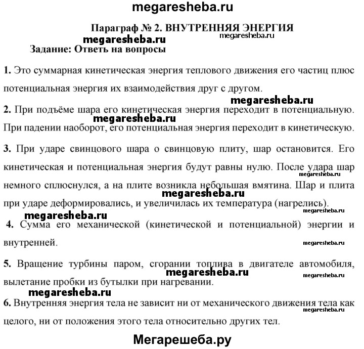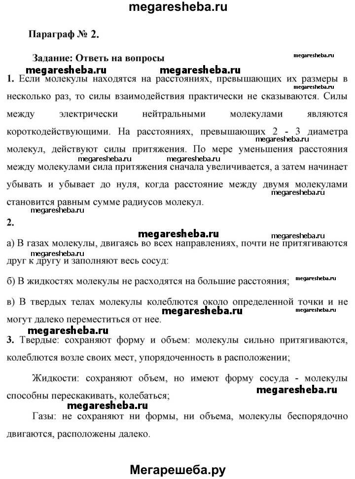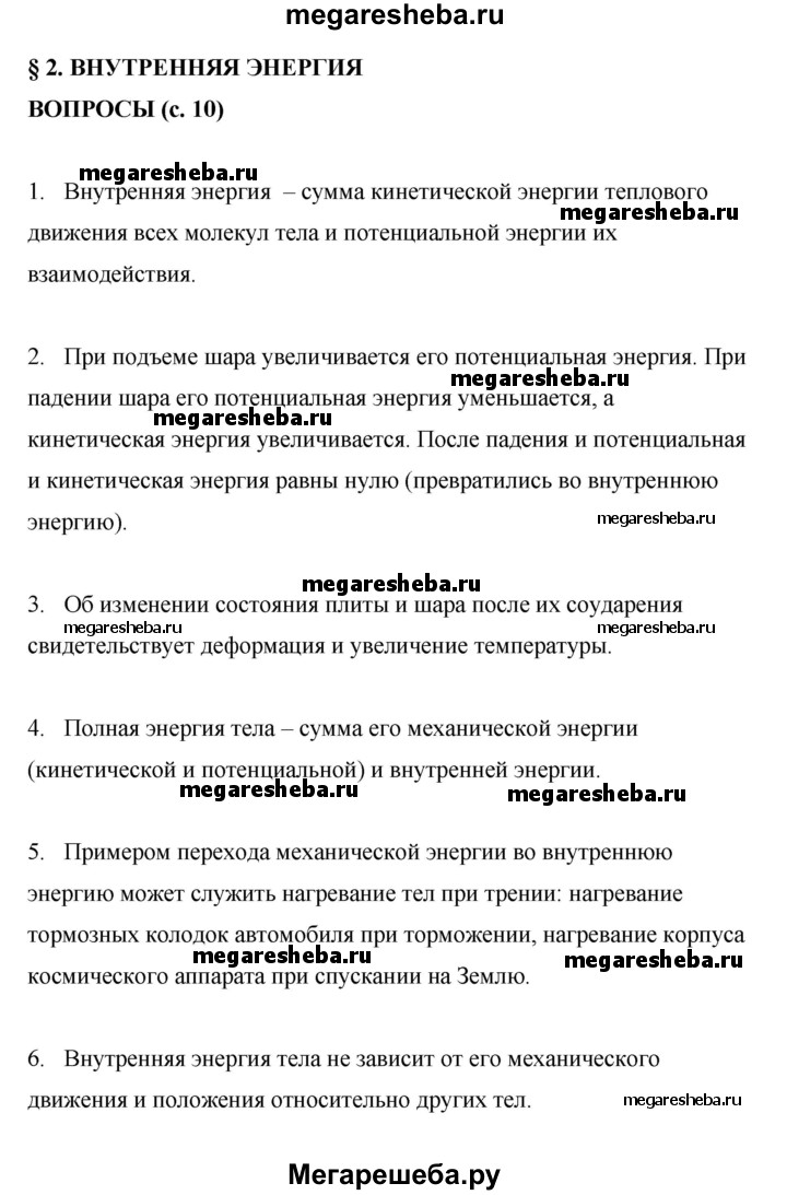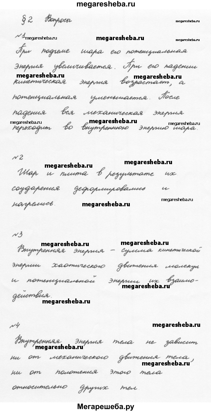 ГДЗ по физике 8 класс Перышкин Базовый уровень вопросы - §2