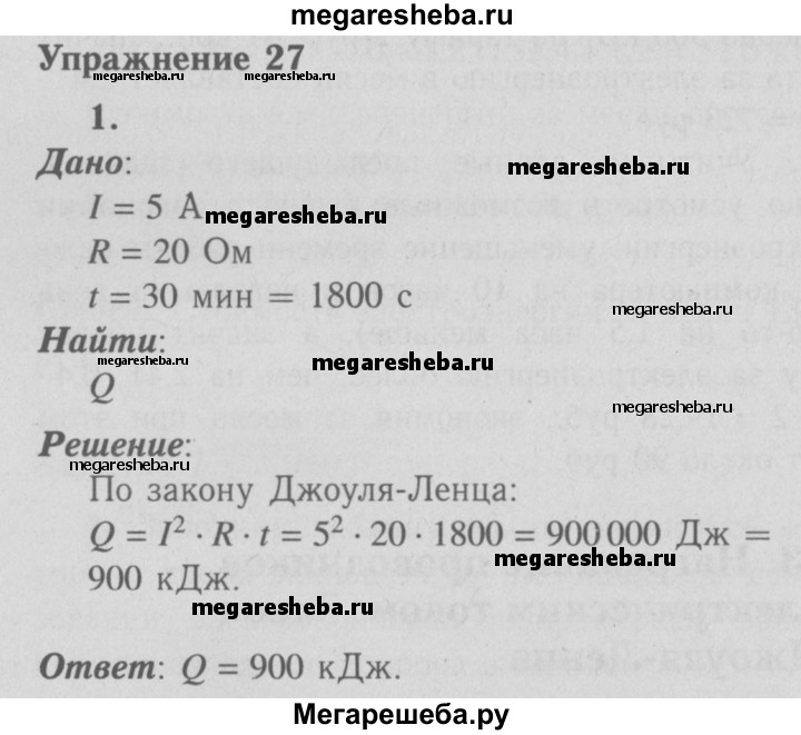 ГДЗ по физике 8 класс Перышкин Базовый уровень упражнения упражнение 27 - 1