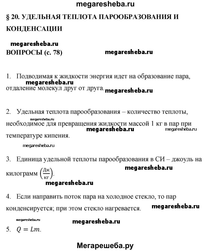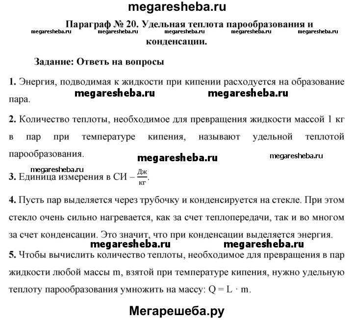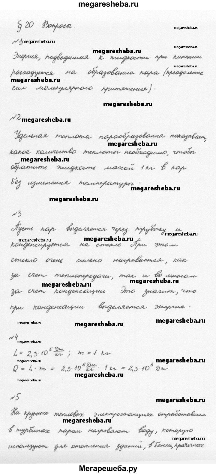 ГДЗ по физике 8 класс Перышкин Базовый уровень вопросы - §20