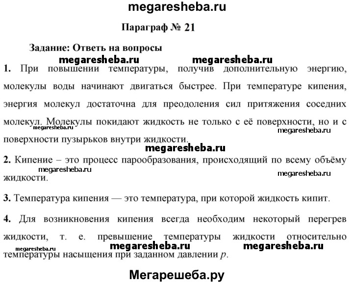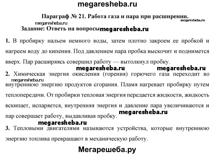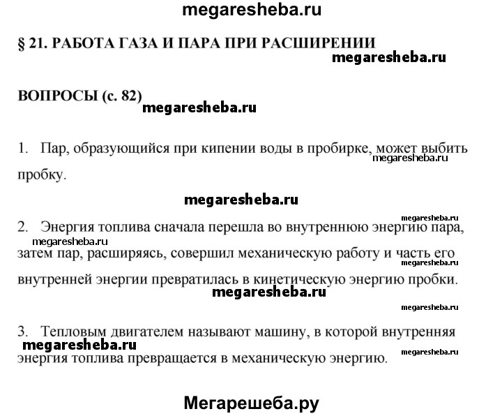 ГДЗ по физике 8 класс Перышкин Базовый уровень вопросы - §21