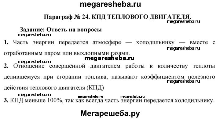 ГДЗ по физике 8 класс Перышкин Базовый уровень вопросы - §24