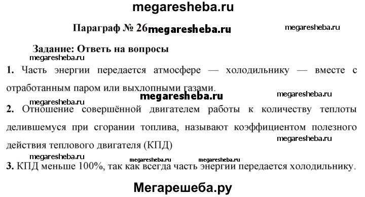 ГДЗ по физике 8 класс Перышкин Базовый уровень вопросы - §26