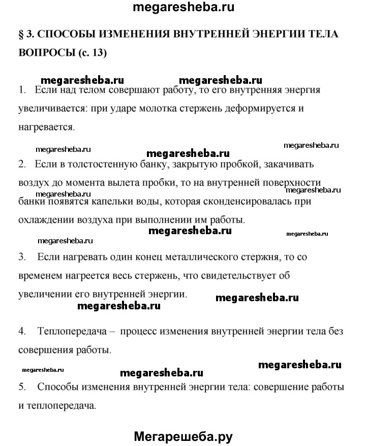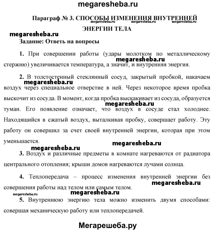 ГДЗ по физике 8 класс Перышкин Базовый уровень вопросы - §3