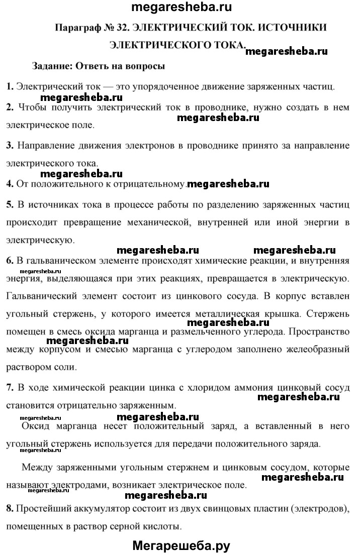 ГДЗ по физике 8 класс Перышкин Базовый уровень вопросы - §32