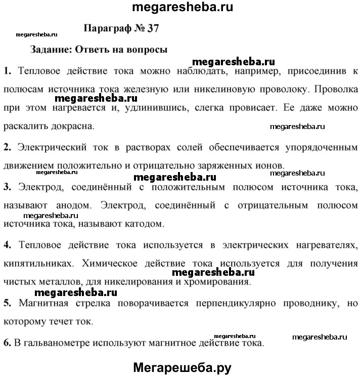 ГДЗ по физике 8 класс Перышкин Базовый уровень вопросы - §37