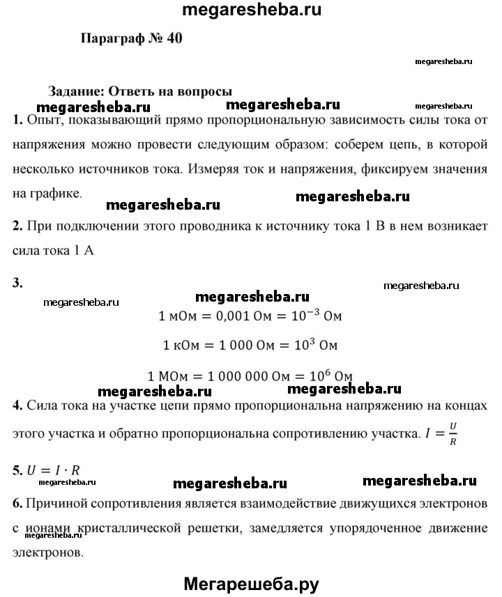 ГДЗ по физике 8 класс Перышкин Базовый уровень вопросы - §40
