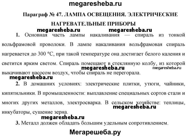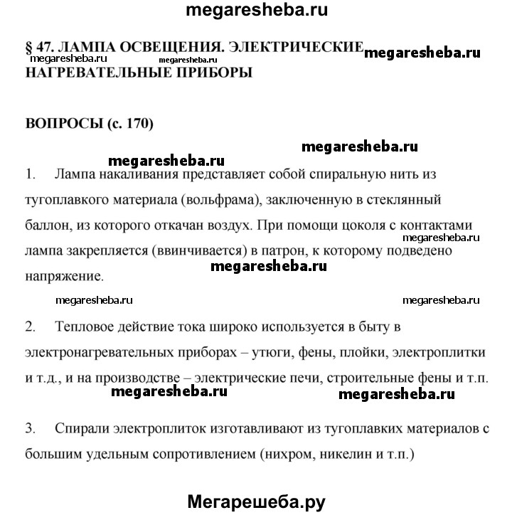 ГДЗ по физике 8 класс Перышкин Базовый уровень вопросы - §47