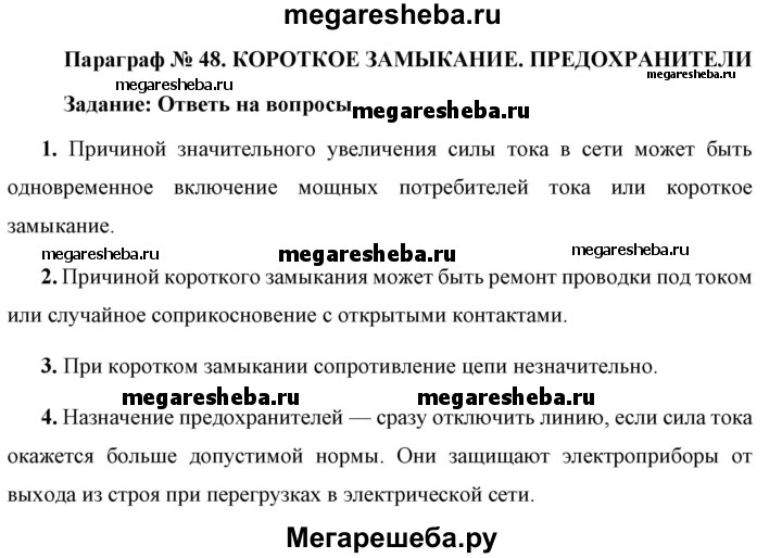 ГДЗ по физике 8 класс Перышкин Базовый уровень вопросы - §48