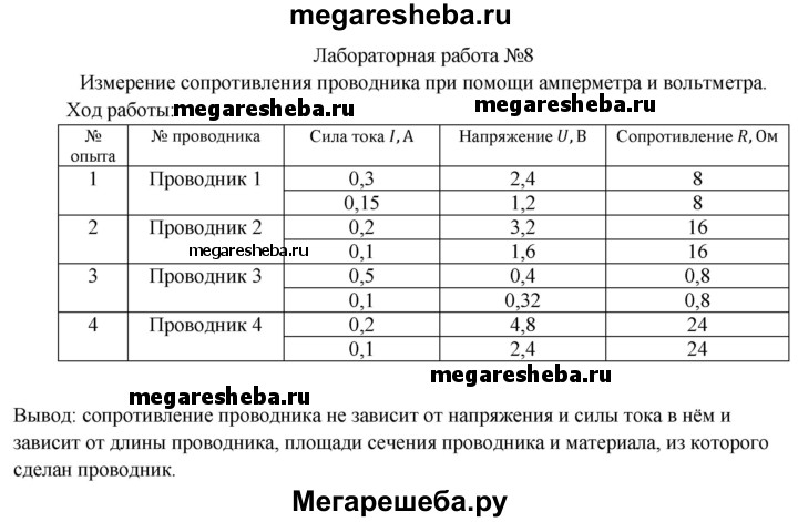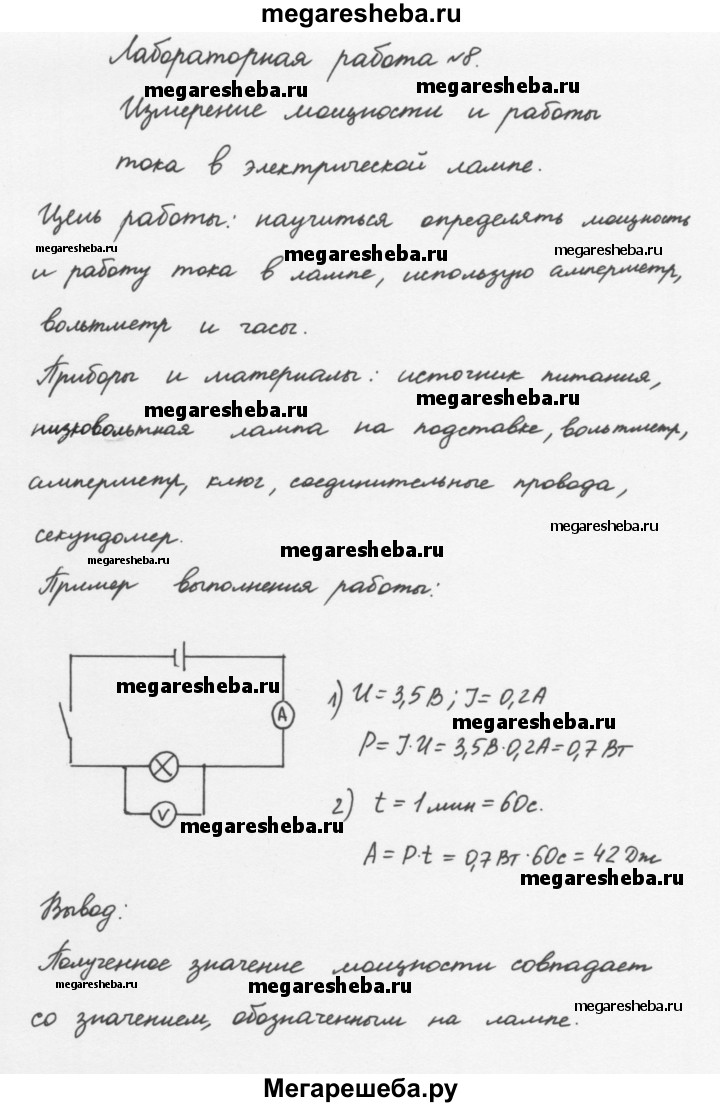 Подробный решебник (ГДЗ) по Физике за 8 (восьмой) класс - готовый ответ лабораторная работа - 8. Авторы учебника: Перышкин, Иванов, Базовый уровень. Издательство: Дрофа 2015-2024.