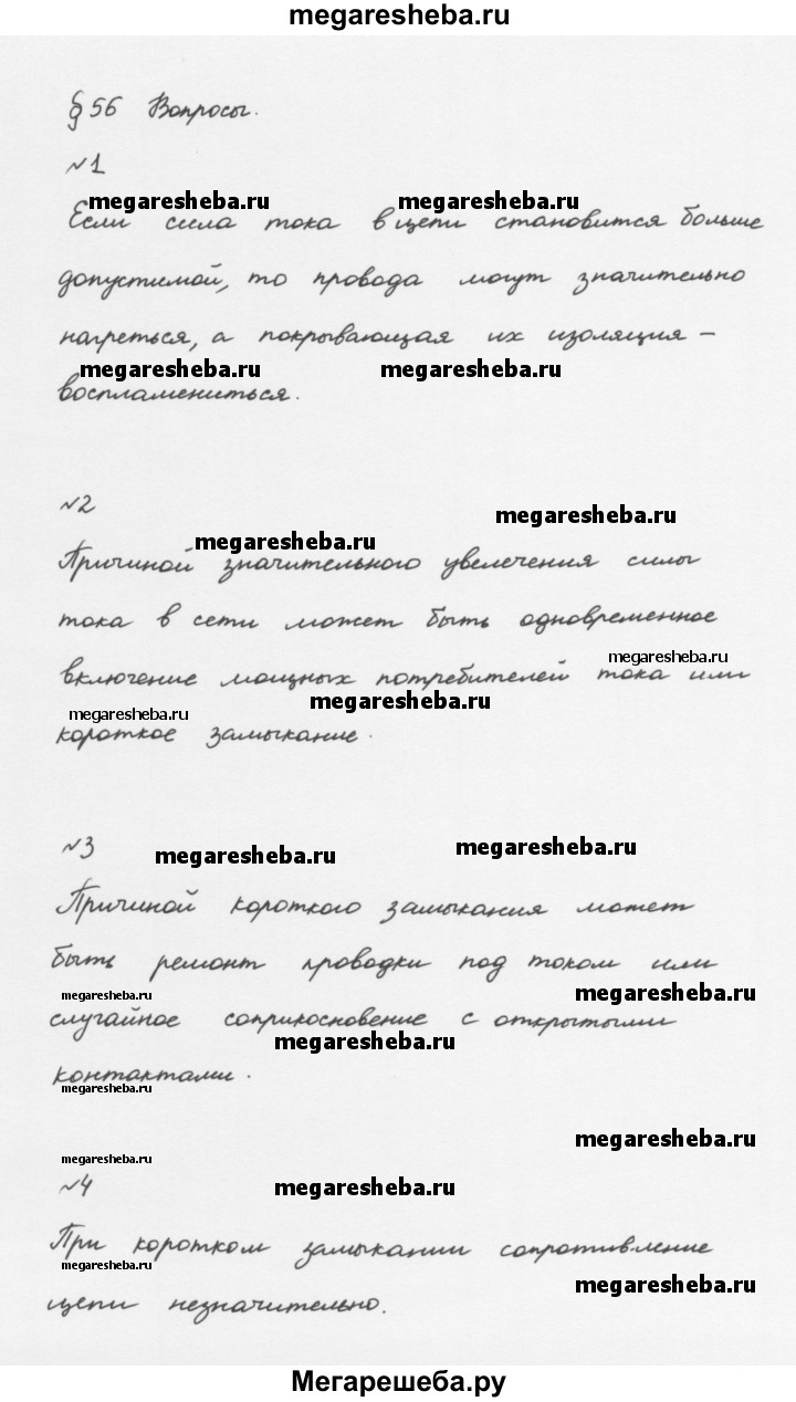ГДЗ по физике 8 класс Перышкин Базовый уровень вопросы - §56
