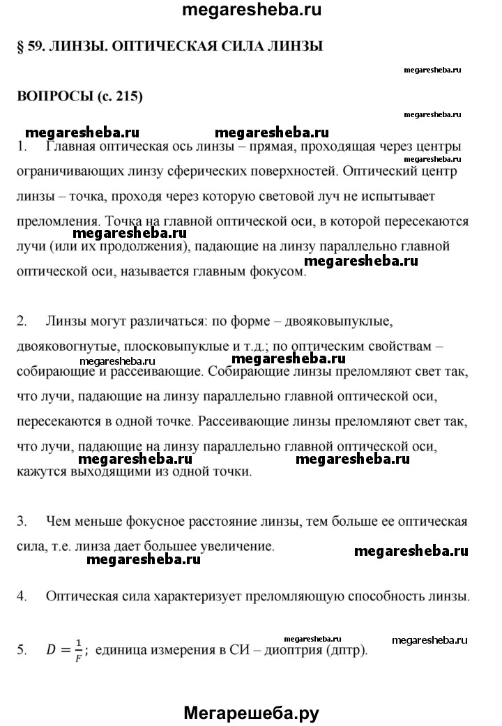 ГДЗ по физике 8 класс Перышкин Базовый уровень вопросы - §59