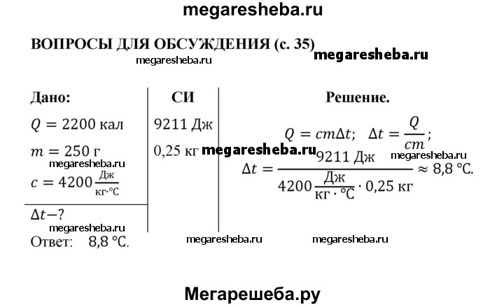 ГДЗ по физике 8 класс Перышкин Базовый уровень обсуди с товарищами - §9