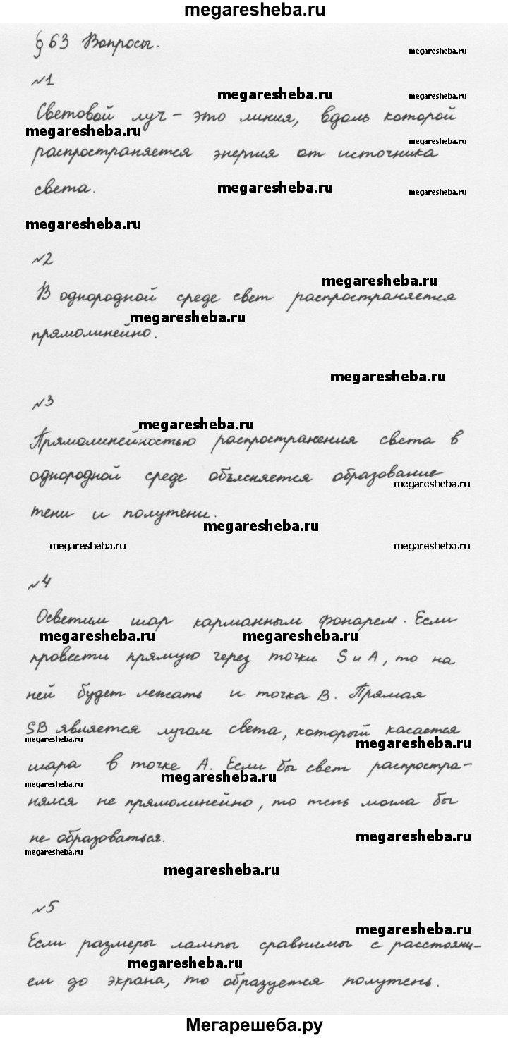 ГДЗ по физике 8 класс Перышкин Базовый уровень вопросы - §63