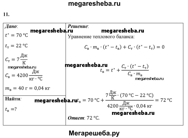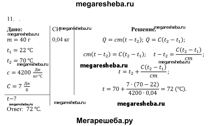 Подробный решебник (ГДЗ) по Физике за 8 (восьмой) класс - готовый ответ задача - 11. Авторы учебника: Перышкин, Иванов, Базовый уровень. Издательство: Дрофа 2015-2024.