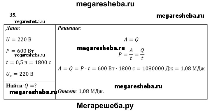 ГДЗ по физике 8 класс Перышкин Базовый уровень задача - 35