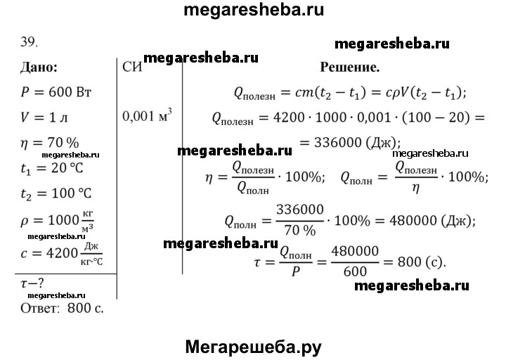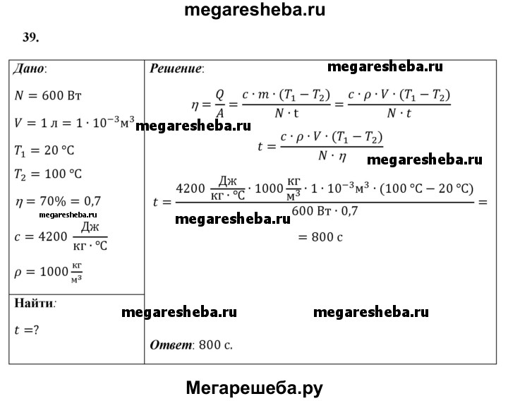 ГДЗ по физике 8 класс Перышкин Базовый уровень задача - 39