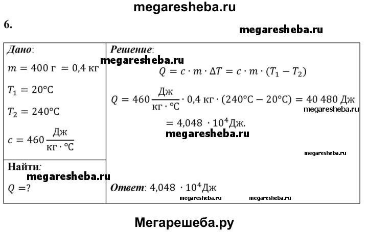ГДЗ по физике 8 класс Перышкин Базовый уровень задача - 6