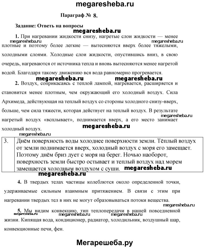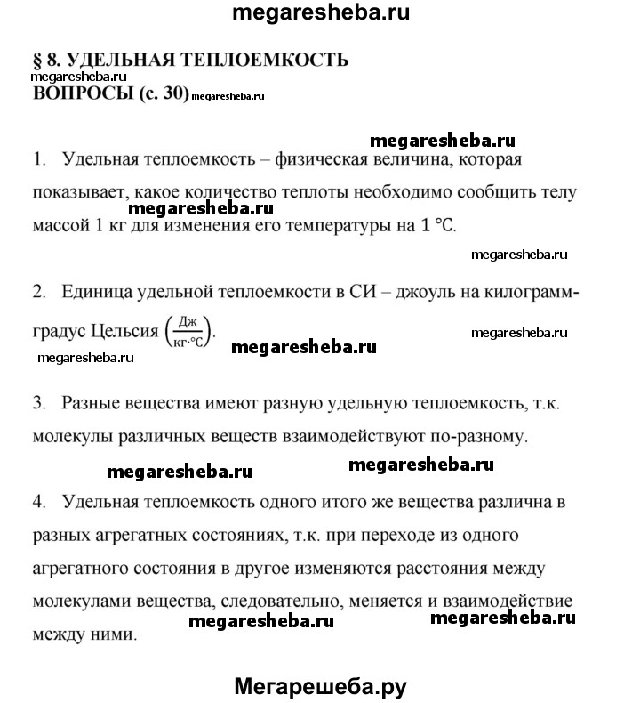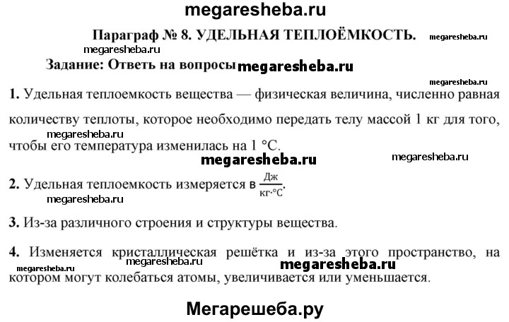 ГДЗ по физике 8 класс Перышкин Базовый уровень вопросы - §8