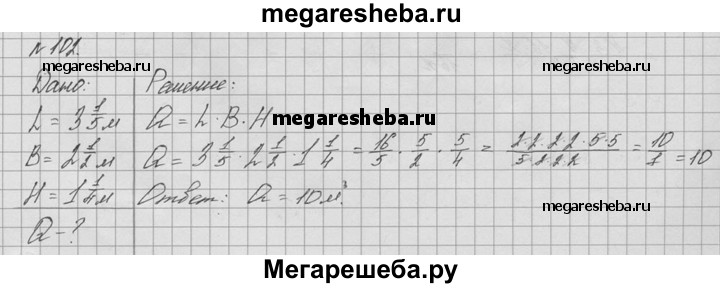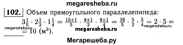 102. Найдите объем прямоугольного параллелепипеда, длина которого 3*1/5 м, ширина 2*1/2м и высота 1*1/4 м.
