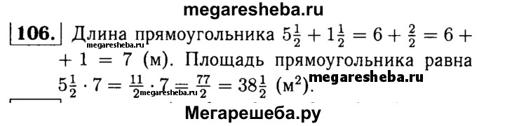 106. Найдите площадь прямоугольника, ширина которого равна 5*1/2м, а длина на 1*1/2 м больше ширины.