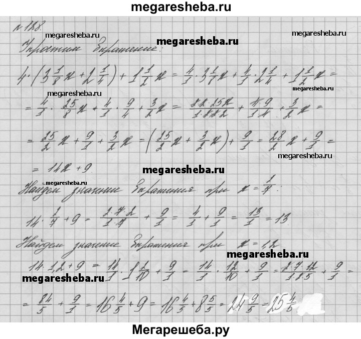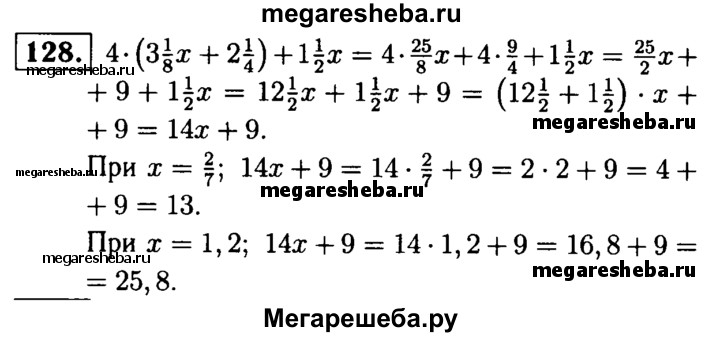 128. Найдите значение выражения: 4 * (3*1/8x + 2*1/4) + 1*1/2x, если х = 2/7, х = 1,2.