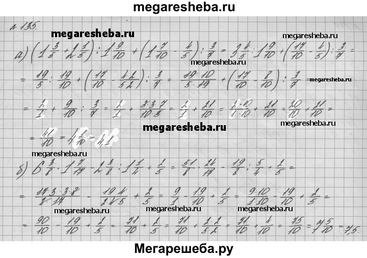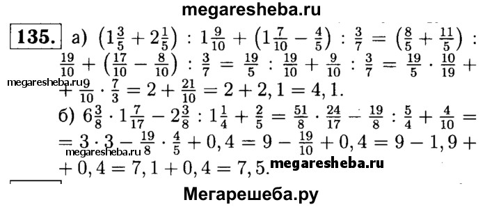 135. Выполните действия: а) (1*3/5 + 2*1/5): 1*9/10 + (1*7/10 – 4/5) : 3/7; б) 6*3/8 * 1*7/17 – 2*3/8 : 1*1/4 + 2/5.