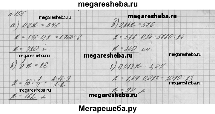 155. Найдите значение величины, если: а) 0,8 ее равны 576 г; б) 2/9 ее равны 36 л; в) 24% ее равны 57,6 км; г) 2,3% ее равны 2,07 р.