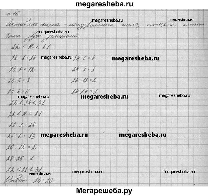 16. Найдите два составных числа х, которые удовлетворяют неравенству 22 < х < 31.