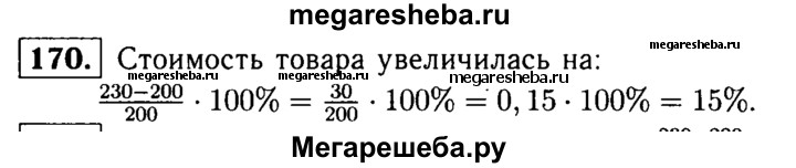 170. Стоимость товара увеличилась с 200 тыс. руб. до 230 тыс. руб. На сколько процентов увеличилась стоимость товара?