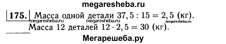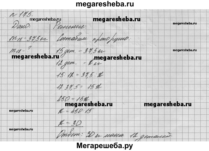 175. Масса 15 одинаковых деталей составила 37,5 кг. Какова масса 12 таких деталей?