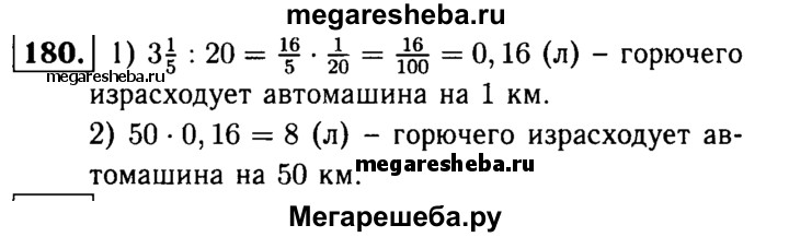 180. На 20 км пути автомашина расходует 3*1/5 л горючего. Сколько горючего автомашина израсходует на 50 км пути?