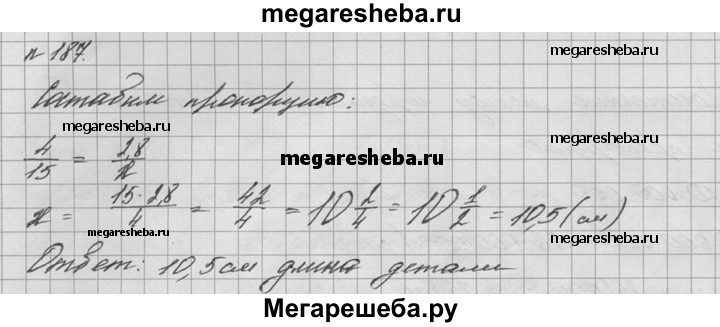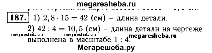 187. Деталь на чертеже, выполненном в масштабе 1:15, имеет длину 2,8 см. Какую длину будет иметь эта деталь на чертеже, выполненном в масштабе 1: 4?