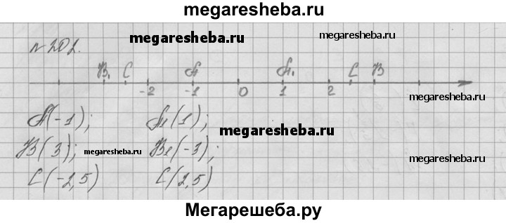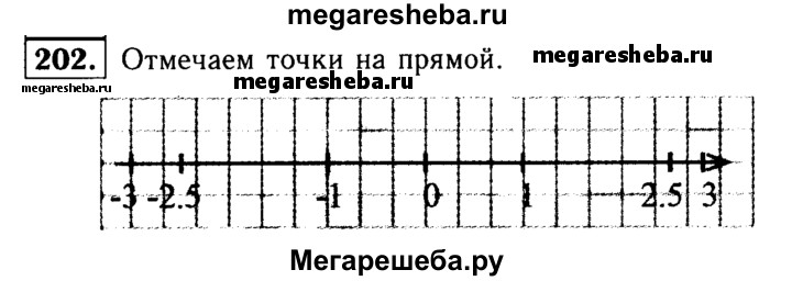 202. Отметьте на координатной прямой точки, координатами которых являются числа -1; 3; -2,5, и точки, координаты которых противоположны этим числам.